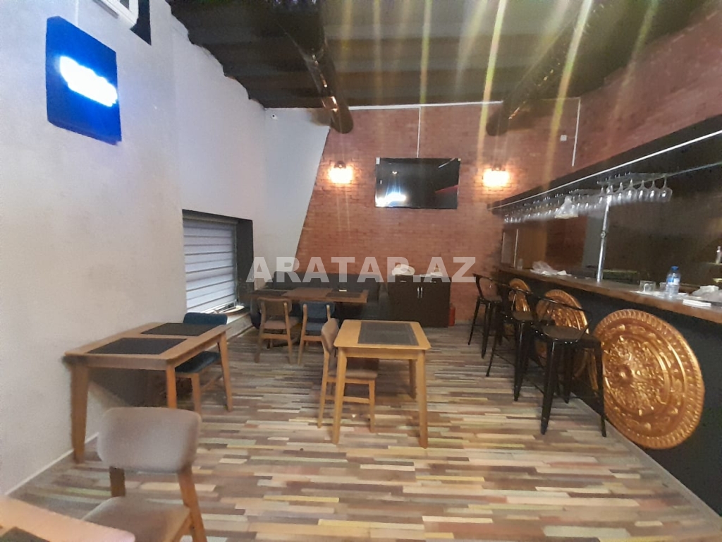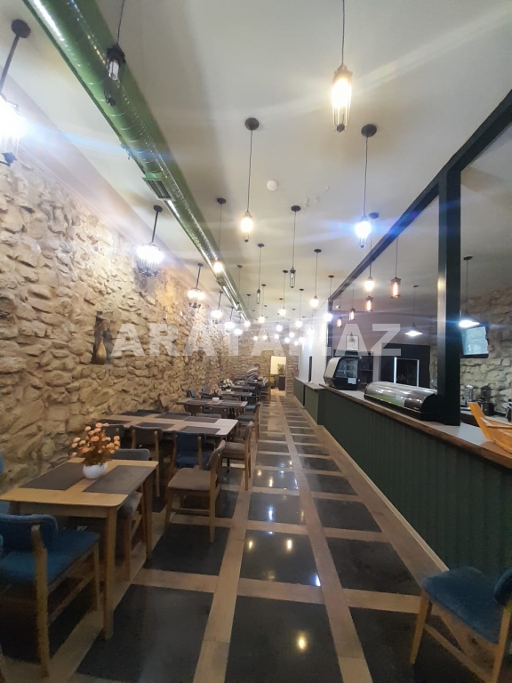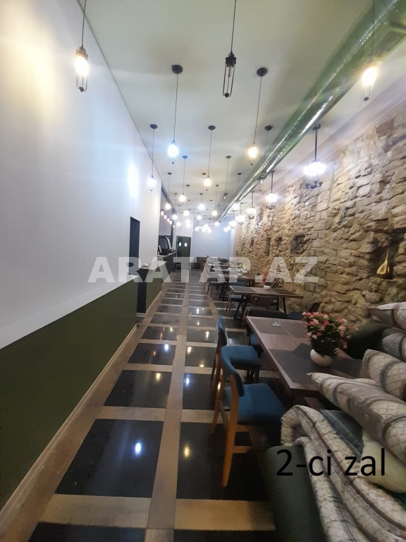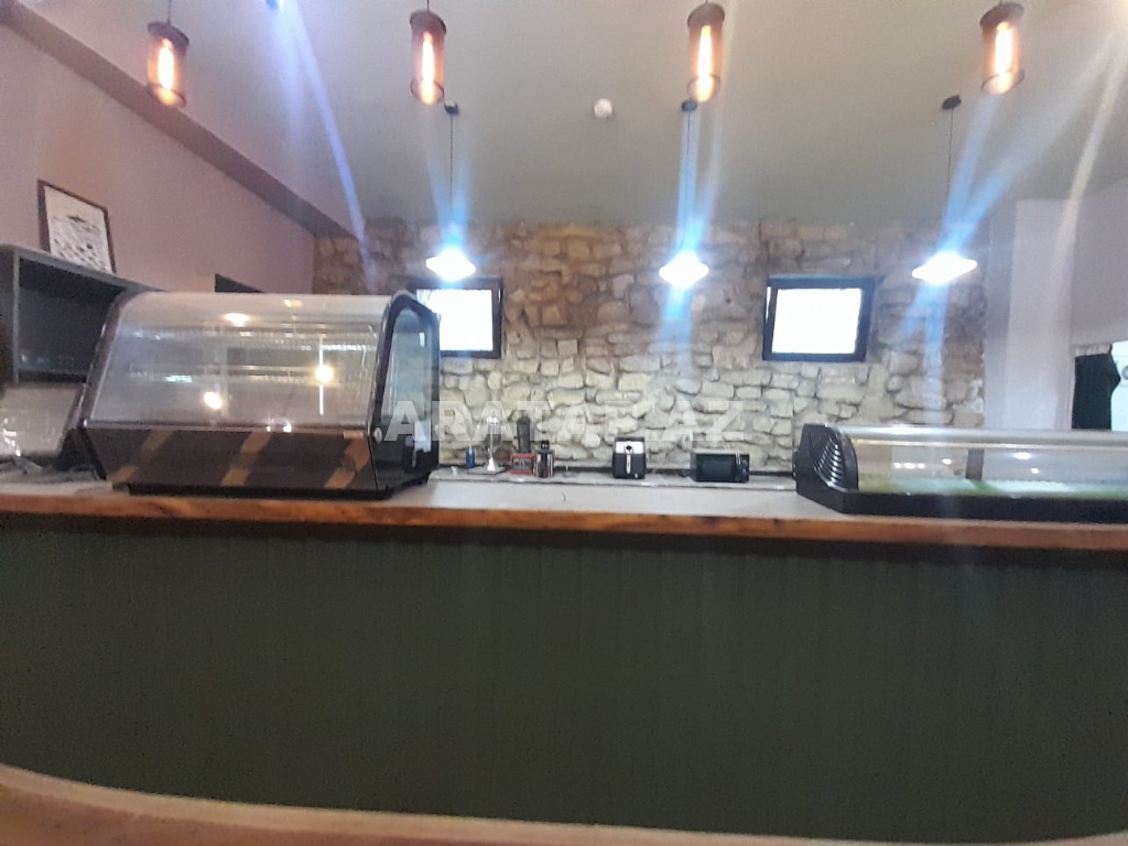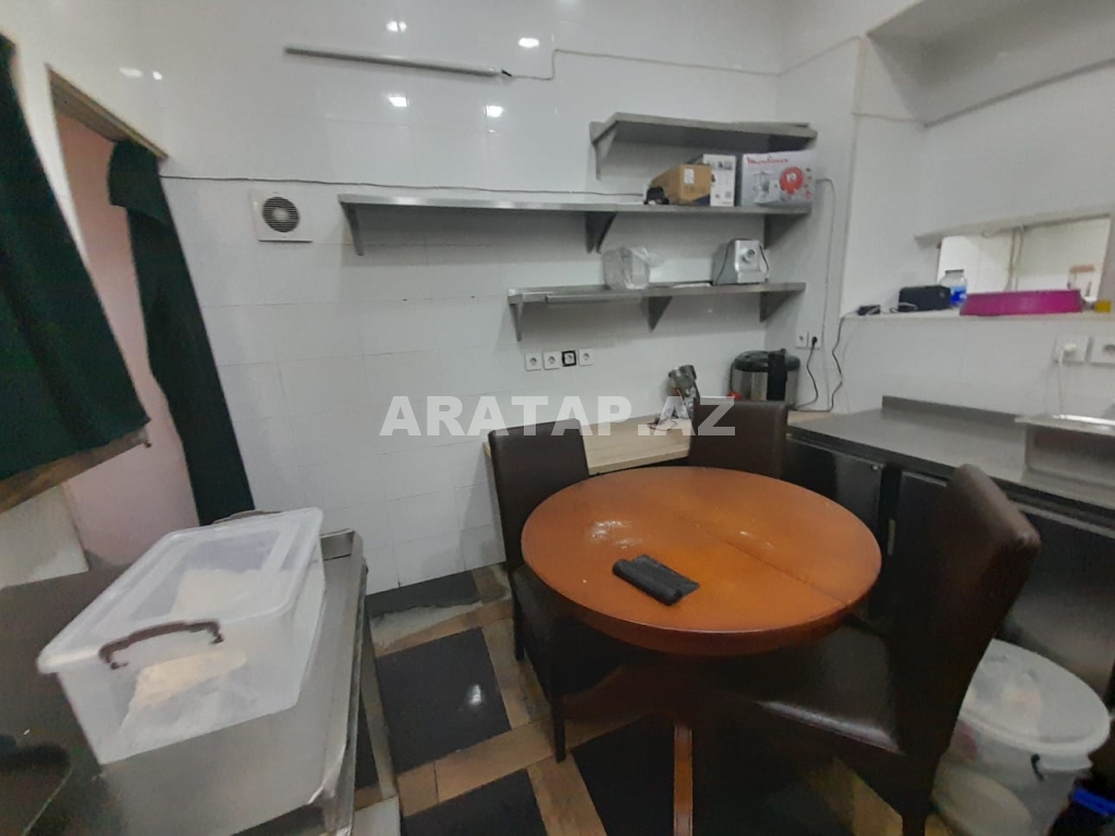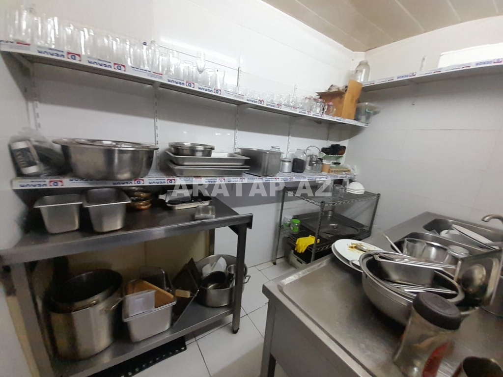 Səbail rayonu,  Sahil metrosu, Tarqovuya yaxın  obyekt ayrı tikili 1/1,  girişi 10 pilləkən yuxarı,  2 zaldan ibarətdir. girişdəki 1-ci zal 100kv -1 bar stolu, 9 masa stulu ilə birlikdə / 2-ci zal 100kv-  7  geniş masa stulu ilə,  2-ci zalda  geniş bar stoyka 50kv mətbəxi vardır.obyektin içində təndirdə vardır. Qaz var texniki şərti vardır.həmçinin 3 fazada işıq var. 7-dən çox soyuducu var. Şirə çəkən,mikro dalğalı,toster,kofe aparatı,çörək  qabı, şirniyyat soyuducusu,   qab-qaşıq, bakallar, stəkanlar, qazanlar əşyalar çoxdur.hamsı yazılmayıb. İstilik kombidir döşəmə isti döşəmədir. əlavə olaraq 3 kondisoner vardır.  1 paltar dəyişmə otağı. 3 sanitar qovşaq var. 2 müştərilər üçün qadın kişi sanitar qovşaq, 1 ədəd işçilər üçün sanitar qovşaq.