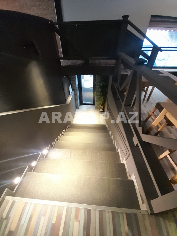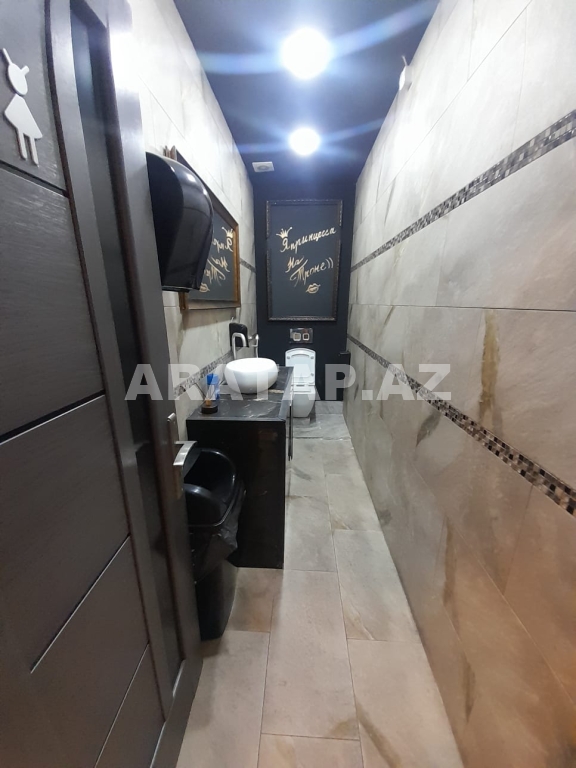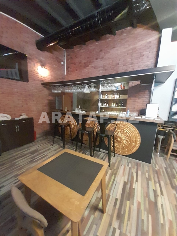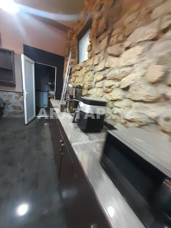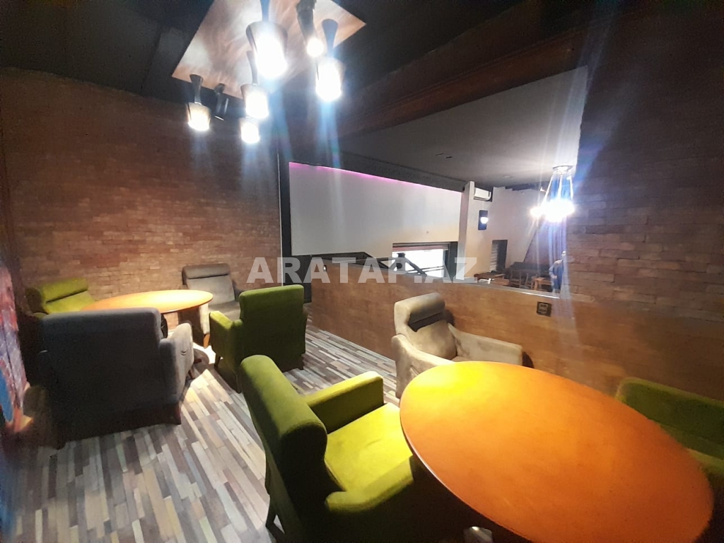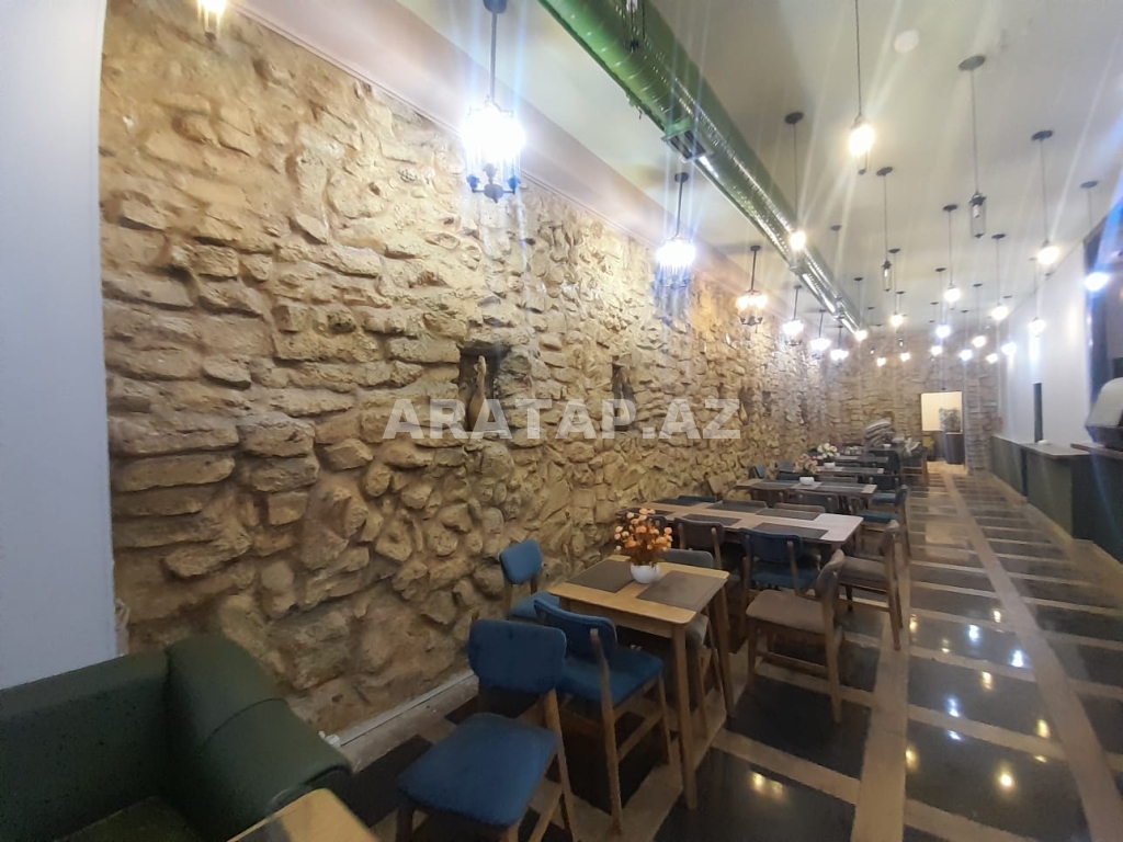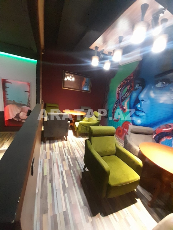 Səbail rayonu,  Sahil metrosu, Tarqovuya yaxın  obyekt ayrı tikili 1/1,  girişi 10 pilləkən yuxarı,  2 zaldan ibarətdir. girişdəki 1-ci zal 100kv -1 bar stolu, 9 masa stulu ilə birlikdə / 2-ci zal 100kv-  7  geniş masa stulu ilə,  2-ci zalda  geniş bar stoyka 50kv mətbəxi vardır.obyektin içində təndirdə vardır. Qaz var texniki şərti vardır.həmçinin 3 fazada işıq var. 7-dən çox soyuducu var. Şirə çəkən,mikro dalğalı,toster,kofe aparatı,çörək  qabı, şirniyyat soyuducusu,   qab-qaşıq, bakallar, stəkanlar, qazanlar əşyalar çoxdur.hamsı yazılmayıb. İstilik kombidir döşəmə isti döşəmədir. əlavə olaraq 3 kondisoner vardır.  1 paltar dəyişmə otağı. 3 sanitar qovşaq var. 2 müştərilər üçün qadın kişi sanitar qovşaq, 1 ədəd işçilər üçün sanitar qovşaq.
