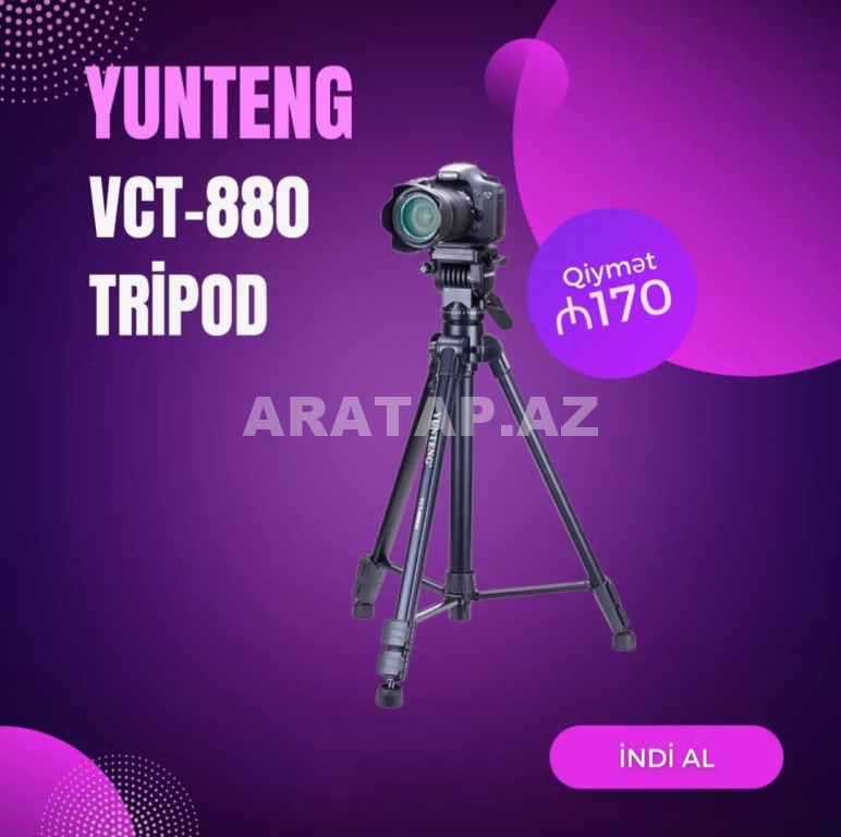 ✅Yunteng VCT-880 Tripod ?Qiymətə daxildir: 1* VCT-880 Tripod 1*Daşıma çantası ?Özəlliklər: Ağırlıq: 2 kq Ağırlıq götürmə: 5 kq Min. hündürlük: 67.5 sm Max. hündürlük: 165 sm Əyim (aşağı): 90° Əyim (yuxarı): 65° Hərəkətli baslıq: 360° Material: ABS yüksək keyfiyyətli alüminium və plastik kombinə. ?Foto avadanlıqların satışı ?Metrolara çatdırılma pulsuz ??Kuryer xidməti var ?Rayonlara göndəriş ?Əlaqə wp: +994 51 441 10 18