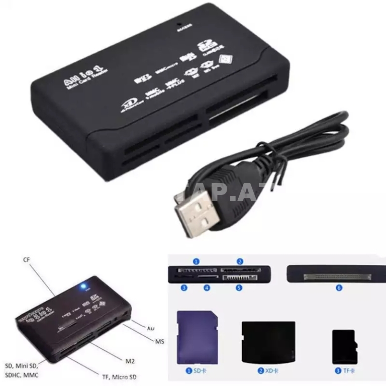 - USB 2.0 Card Reader for SD XD MMC MS CF SDHC TF Micro SD M2 Adapter
