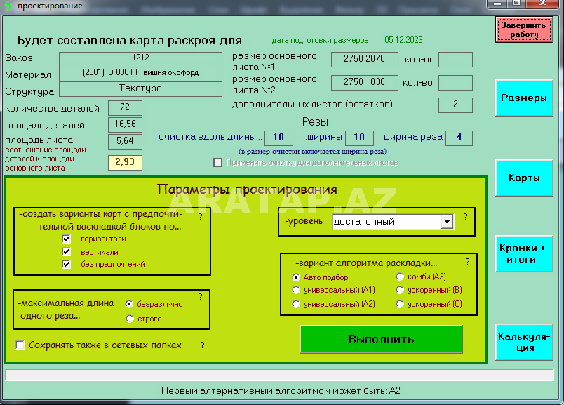 - Выбор альтернативных варантов (алгоритмов) проектирования для более избирательного подхода к выбору окончательного варианта карты раскроя;