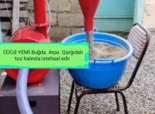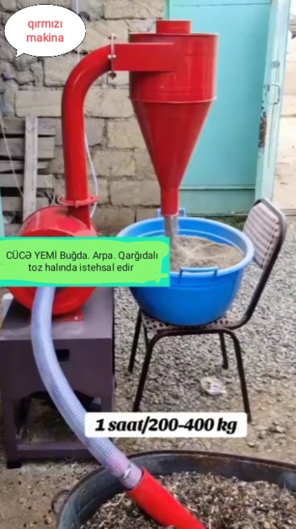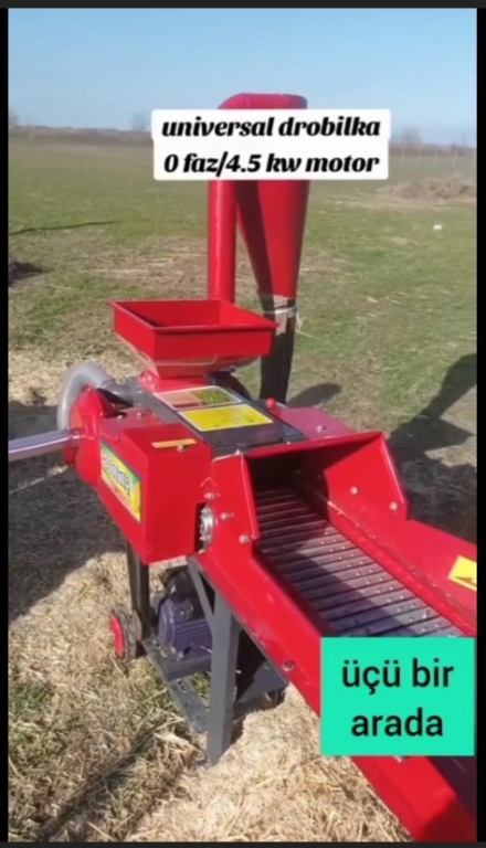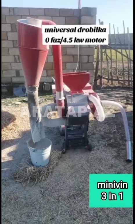 ● Yem-Ot üyüdən. CÜCƏ və ÇOLPA üçün. Saatda: 250-300 kq. 8-10 Pres üyüdür. 220V. 2.2 Kw. Qiyməti: 750 ₼ ● CÜCƏ YEMİ istehsal edən qırmızı makina. Buğda. Arpa. Qarğıdalı. Yem. Taxılı toz halında istehsal edir. Saatda 300-500 kq. 220V. 3 Kw. Qiyməti: 1.250 ₼ ● CÜCƏ YEMİ istehsal edən yaşıl makina. Buğda. Arpa. Qarğıdalı. Yem. Taxılı toz halında istehsal edir. Saatda 1 ton. 380V. 7.5Kw. Qiyməti: 2.950 ₼ ● MİNİVİN. Ot və Yem üyüdən. Buğda. Arpa. Qarğıdalı. Taxıl. Saman. Yonca. Pambıq. Ot. Quru və Yaş. Pres. Maralfalfa. Qamış üyüdən. OT-Saman Saatda: 20 ədəd. Otu 2 cür iri və xırda formada üyüdür. YEM Saatda: 400-600 kq. Yemi 2 cür boru vasitəsi ilə avtomatik və mexaniki üstdən özünüz əlavə etməklə üyüdülür. 20 Bıçaqlı. 4 Baltalı. 220V. 4.5 Kw. Qiyməti: 2.550 ₼ ● UNİVERSAL DROBİLKA. Ferma və fərdi təsərrüfat üçün. Ot. Saman. Pres. Yonca və YEM üyüdən. 4 setkası var. Ot-Saman. İri. Xırda. Yarma üçün. Saatda: 500-600 kq yem, 5-6 pres üyüdür. 24 bıçaqlı və 6 baltalıdır. Qiyməti: 1.350 ₼